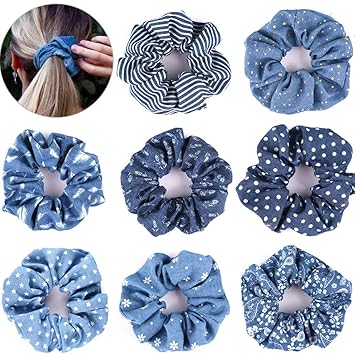 Hair Scrunchies Denim 90 S Ties Elastic Hair Bands Ropes Scrunchy Soft For Ponytails Top Knots