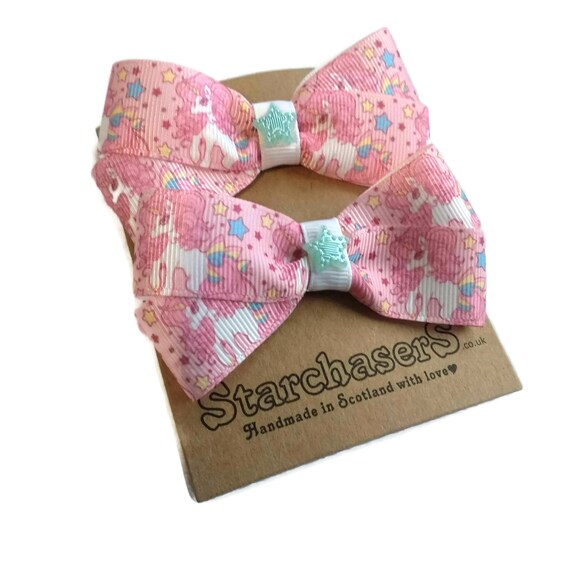 Pink Unicorn Hair Bobbles Pack Of 2 On No Snag Elastic Scrunchies Great Gift For Unicorn Fan