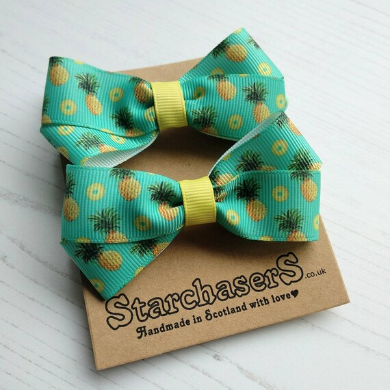 Pineapple Hair Bobbles Pack Of 2 Handmade Bows On No Snag Elastic