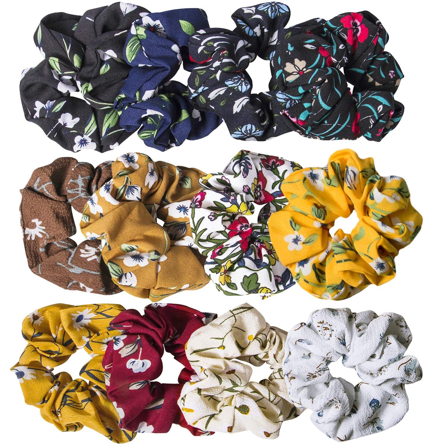 12 Pack Chiffon Hair Scrunchies Flower Scrunchy Hair Bobbles Floral Hair Ties Ponytail Holder For Women Girls 12 Assorted Colors