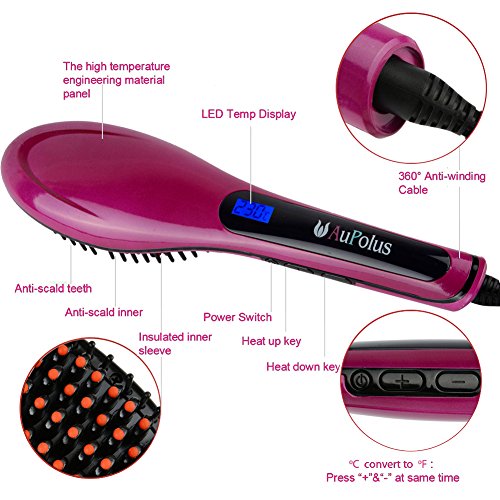 3 In 1 Ceramic Hair Straightener By Aupolus Hair Detangler Hot Brush Dryer Heats Up Instantly