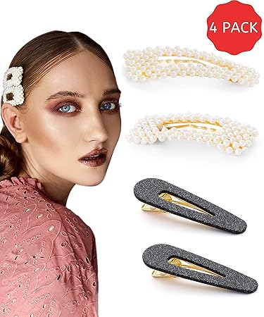 Hela Studio Hair Clips 4 Piece Set Stunning Hair Barrettes Pearl Clips And Black Glitter Resin