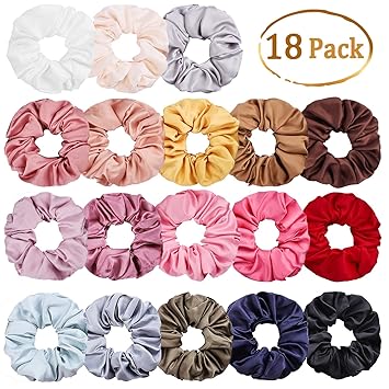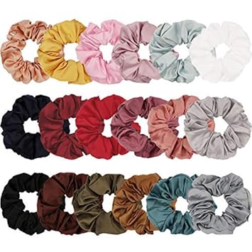 Ondder 18 Colors Satin Hair Scrunchies Elastic Hair Bobbles Hair Ties Ponytail Holder Hair Scrunchy Bands