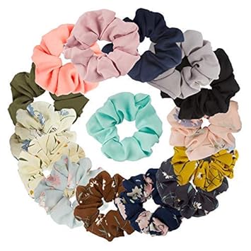 Chanaco 15 Pack Chiffon Hair Scrunchies Hair Bobbles Elastic Hair Bands Hair Bow Chiffon Ponytail Holder Hair Elastics Ties 15 Colors