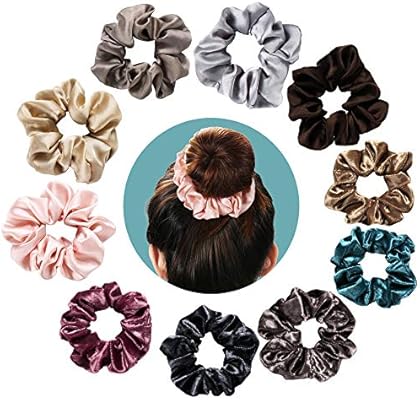 Ondder 10 Pack Velvet Scrunchies Hair Bobble Elastics Hair Scrunchy Hair Bands Headbands Women