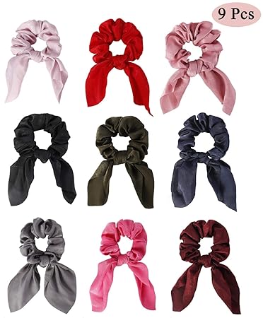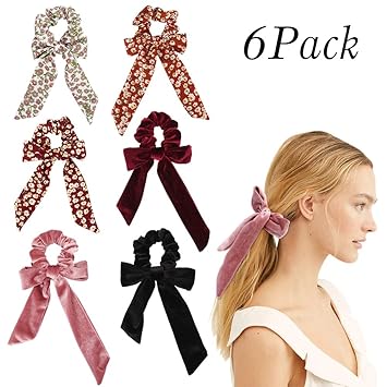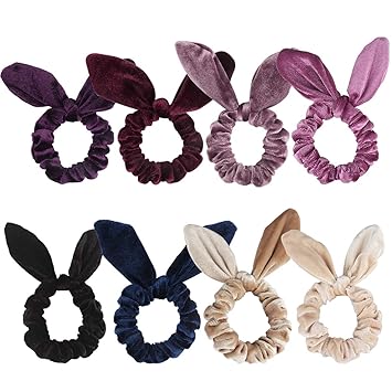 Chanaco 6 Pack Hair Scrunchies Velvet Scrunchy Hair Bobbles Elastic Hair Bands Ponytail Holder Rabbit Ear Style Hair Ties 6 Colors