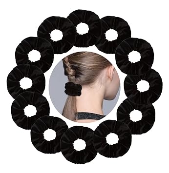 Ondder 12 Pack Black Velvet Scrunchies Hair Bobble Elastics Hair Scrunchy Hair Bands Headbands Women