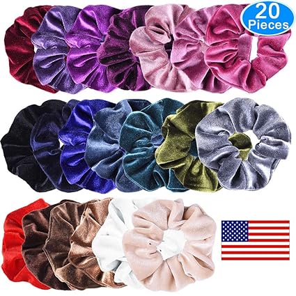 Jaciya 20 Pack Velvet Scrunchies Elastic Scrunchy Hair Bobbles Elastics Hair Ties Bands Hair