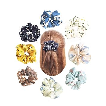 8 Pack Hair Scrunchies Women S Chiffon Floral Elastics Hair Bobbles Soft Elegant Hair Bands Colorful Scrunchy Hair Ties Ponytail Holder Hair