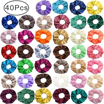 40 Pcs Silk Satin Hair Scrunchies Set For Women Strong Elastic Hair Bobbles For Ponytail Holder Colorful