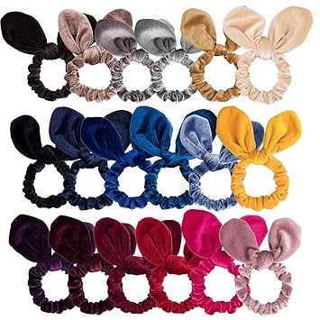 Chanaco 12 Pack Hair Scrunchies Velvet Scrunchy Hair Bobbles Elastic Hair Bands Ponytail Holder Rabbit Bunny Ear Style Hair Ties 12 Colors