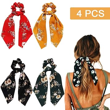 4pcs Hair Scrunchies Chiffon Scarf Hair Ties Elastic Hair Bands Ponytail Holder Flower Printed Hair