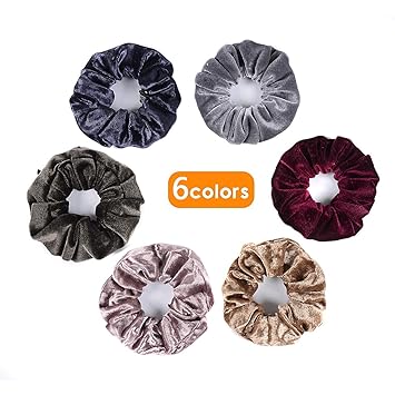 Ondder 6 Pack Velvet Scrunchies Hair Bobble Elastics Hair Scrunchy Hair Bands Headbands Women