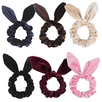Ahoney 6 Pack Hair Scrunchies Velvet Scrunchy Hair Bobbles Elastic Hair Bands Rabbit Ear Style 6 Colors