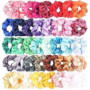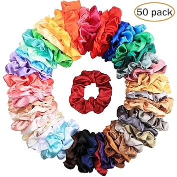 Canflo 50 Colors Hair Scrunchies Satin Elastic Hair Bobbles Hair Scrunchy Ties Vintage Hair Bands Soft