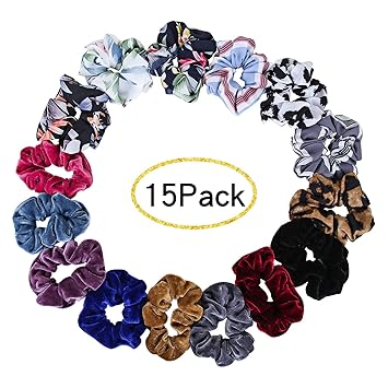 Hair Scrunchies For Women Soft Hair Bobbles Colorful Elastic Hair Scrunchies Ponytail Holder Hair Scrunchy 15 Pieces Free Of 18 Count Elastic Hair