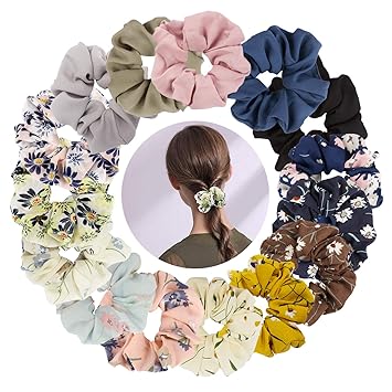 Selory 15 Packs Hair Scrunchies Ties Velvet Elastic Hair Scrunchy And Chiffon Flower Hair Bobbles Ponytail Holder Hair Bands For Women Girls