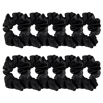 Bbto 10 Pieces Satin Hair Scrunchies Elastic Hair Bobbles Scrunchies Hair Ties For Kids Adults Black