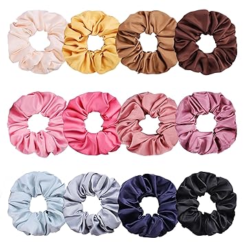 Amazon Com Whaline 12 Colors Satin Hair Scrunchies Elastic