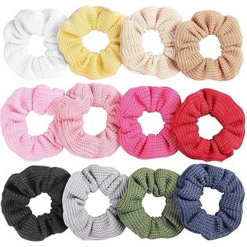 Whaline 12 Colors Hair Scrunchies Knit Elastic Hair Bobbles Hair Scrunchy Soft Ponytail Holder Hair Bands For Kids Adults